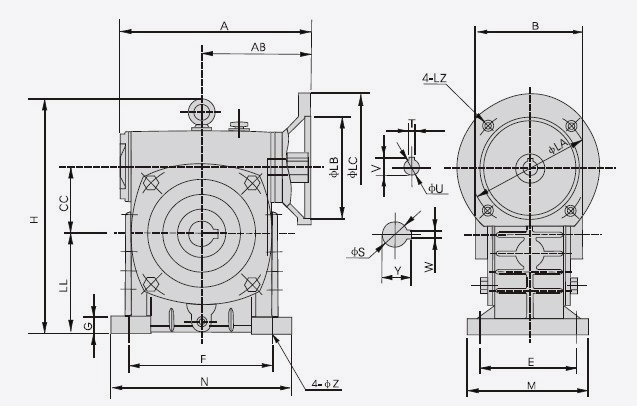 | 減速比Ratio | A | AB | B | CC | H | LL | M | N | E | F | G | Z | 電機(jī)法蘭Flange | 人力孔 Input Hole