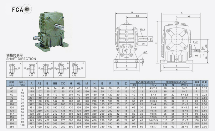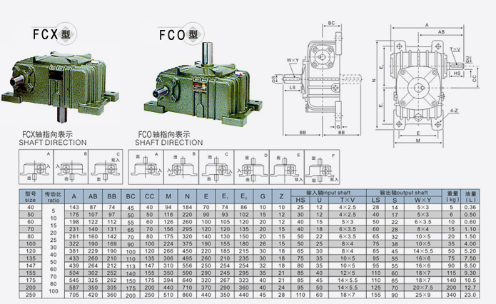 FC單級減速機型號參數(shù)