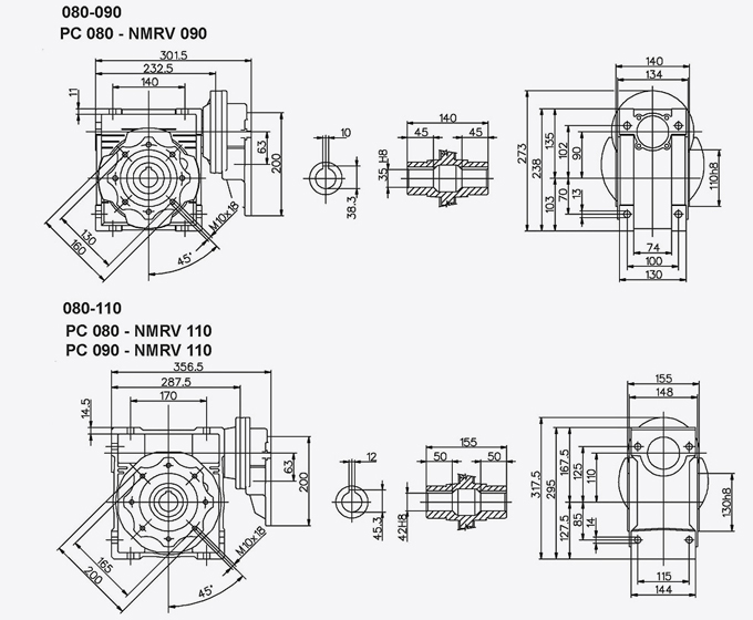 RV系列雙級鋁殼蝸輪蝸桿減速機