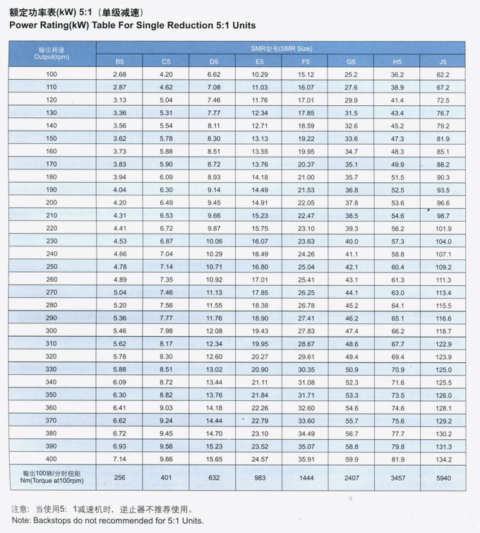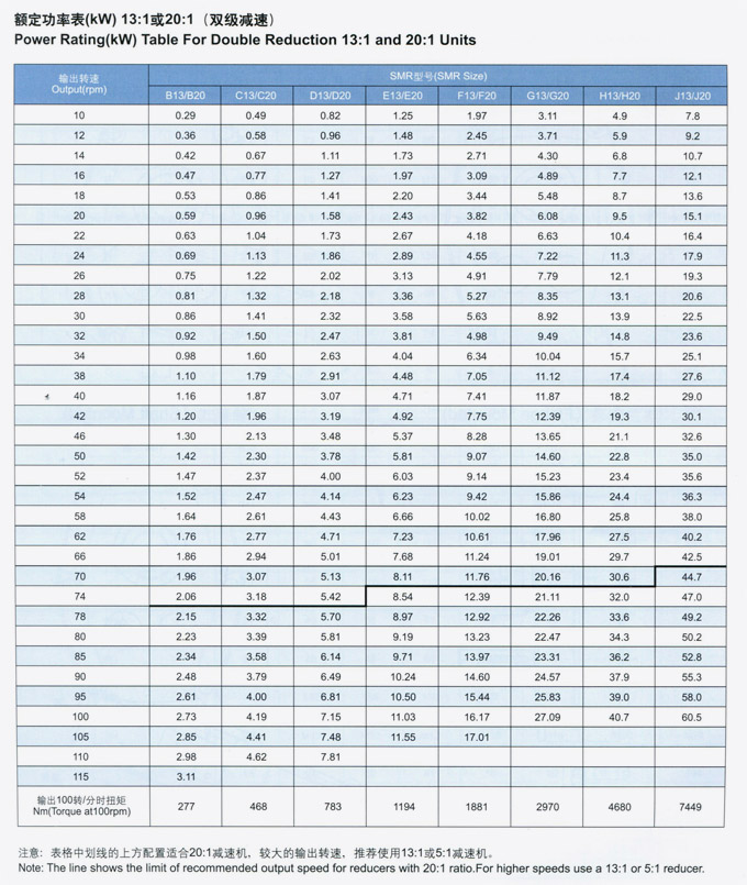 SMR公制軸裝式斜齒輪減速機(jī)額定功率表