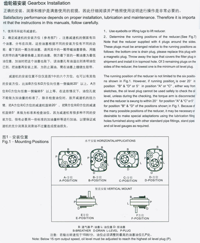 SMRY英制軸裝式斜齒輪減速機(jī)安裝位置