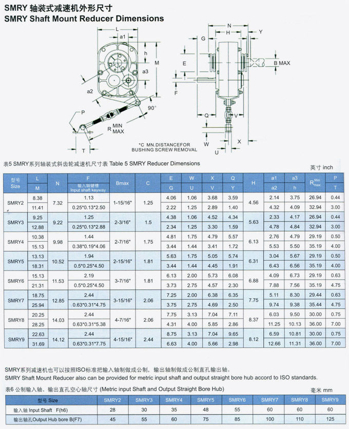 SMRY英制軸裝式斜齒輪減速機外形尺寸